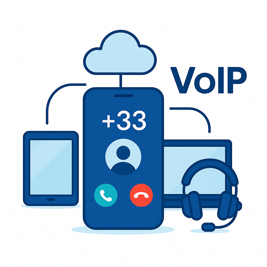 La téléphonie VoIP vous libère des lignes traditionnelles : vous pouvez passer et recevoir vos appels via internet, depuis votre ordinateur, smartphone, ou téléphone IP.